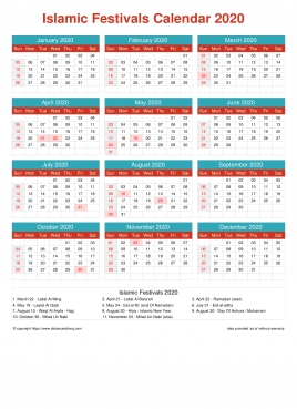 2020 Islamic Festivals Calendar Template Free Printable Templates