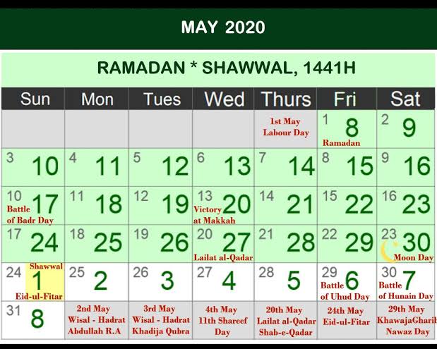 Ramadan 2020 Calendar Date