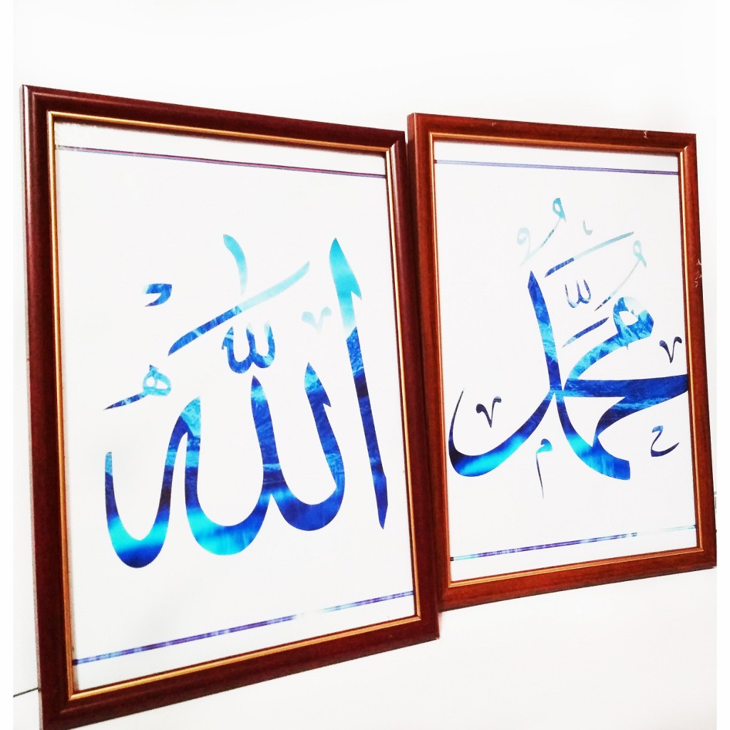Islamic Calligraphy Muslim Decorations Allah Muhammad Framed Blue Winter Shopee Malaysia
