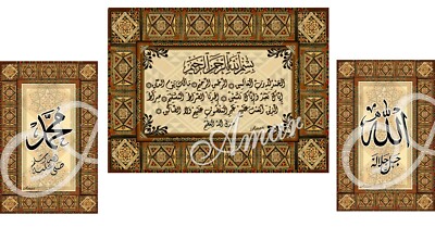 Allah Muhammad Alfattiha Quran Islamic Calligraphy Wall Decor Posters 3pcs Set Ebay