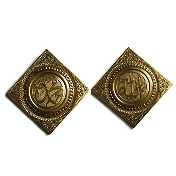 Allah Muhammad Pair Diamond Shape Unique Elegant Modern Islamic Arabic Calligraphy Wall Art Decor Hand Carved Floral Designs Allah Mohammed Wall Decor Solid Wood 12 X12 Gold Walmart Com Walmart Com