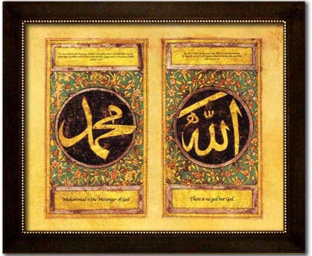 Amazon Com Allah Muhammad Calligraphy Large Faux Canvas Frame Reproduction Of Antique Artwork Overall Frame Size 24 X 20 Inches Oil Paintings Posters Prints