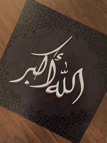 Farooqi Design Islamic Wall Art Arabic Calligraphy Allahu Akbar 9x9 Amazon In Home Kitchen