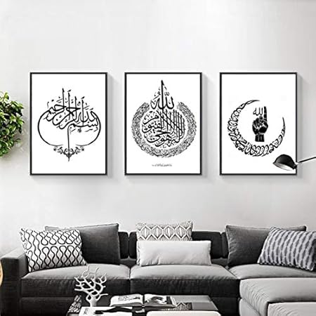 Suuyar 3 Pieces Modern Arabic Calligraphy Black And White Canvas Paintings Islamic Wall Art Posters Pictures Prints Living Room Home Decor 40x50cm No Frame Amazon Co Uk Kitchen Home