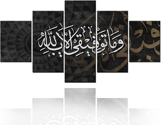Amazon Com Islamic Black Wall Art Muslim Canvas Painting Prints Allah Arabic Calligraphy Mecca Pictures 5 Pieces Posters Home Decor Artwork Arabic Framed Bedroom Living Room 50 Wx24 H Artwork 10 Posters Prints