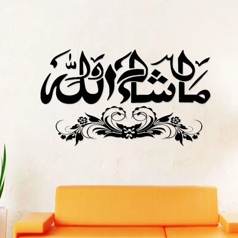 Masha Allah Islamic Wall Stickers Muslim Calligraphy Art Home Decor Flower Pattern Wall Decals Vinyl Decals Home Wallpaper All Wallpaper Wallpaper Patternhome Wallpaper Aliexpress