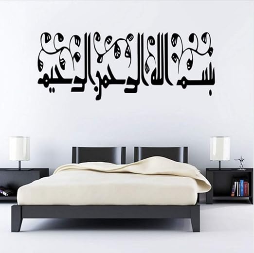 Amazon Com Colorfulhall New Black Muslim Islamic Quran Calligraphy Bismillah Kalima Art Wall Art Sticker Decal Decals For Home Paint Living Room Bedroom Baby