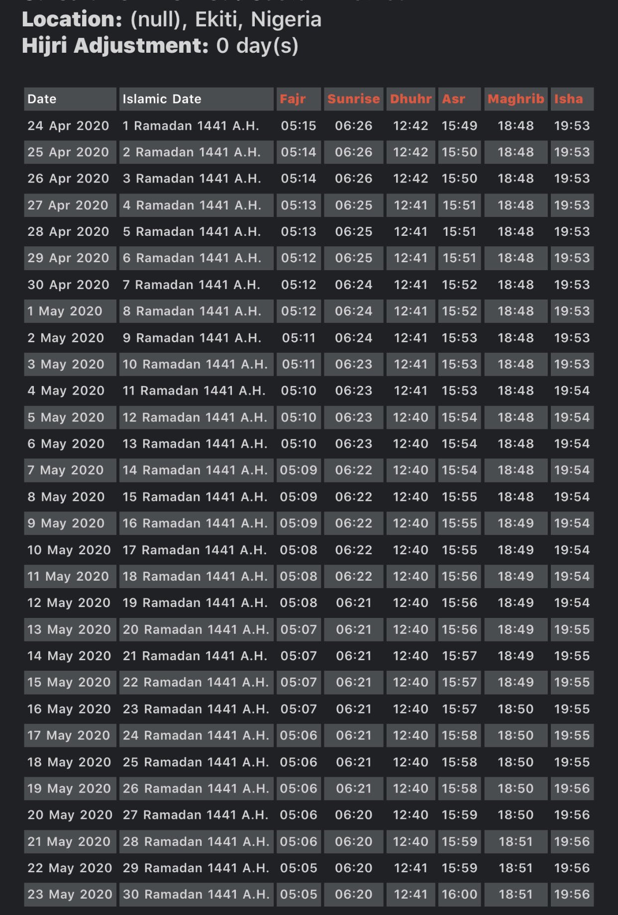 Simwal On Twitter Ado Ekiti Ramadan Prayer Times