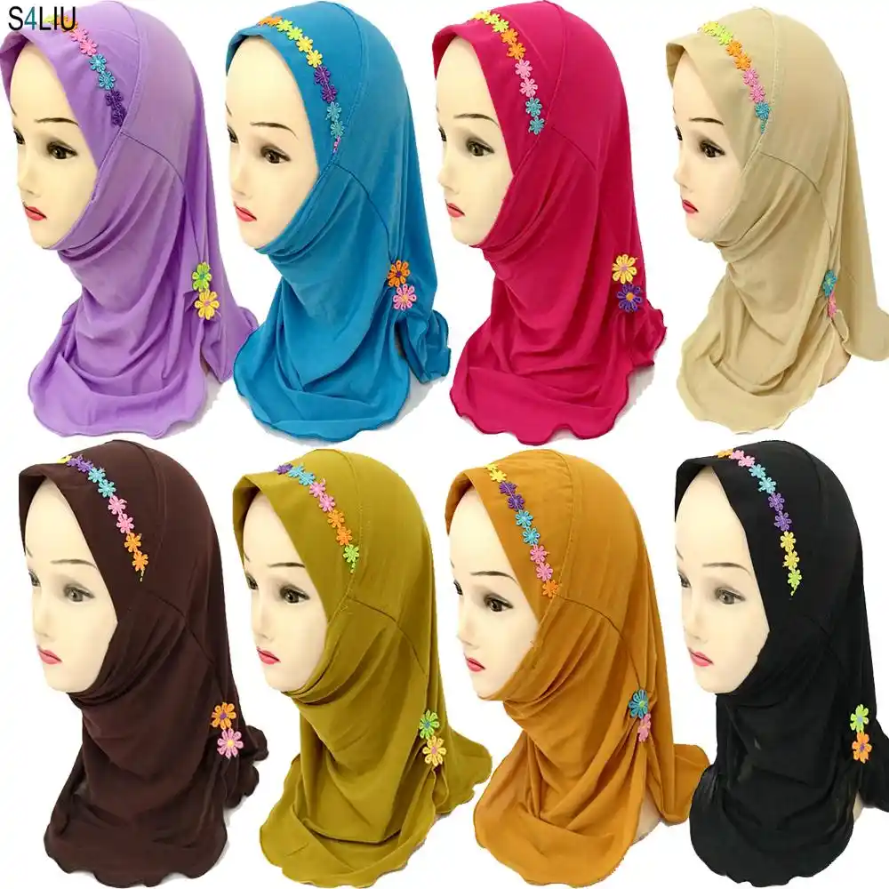 Ramadan Muslim Kids Girls Hijab Scarf Islamic Flower Caps Shawls Amira Headscarf Wrap Headwear Turban Arab Children Underscarf Aliexpress