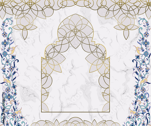 Arabic Floral Arch Traditional Islamic Ornament On White Marble Background Mosque Decoration Design Element Design Template For Greeting Card Banner Poster Print Vector Illustration Buy This Stock Vector And Explore Similar