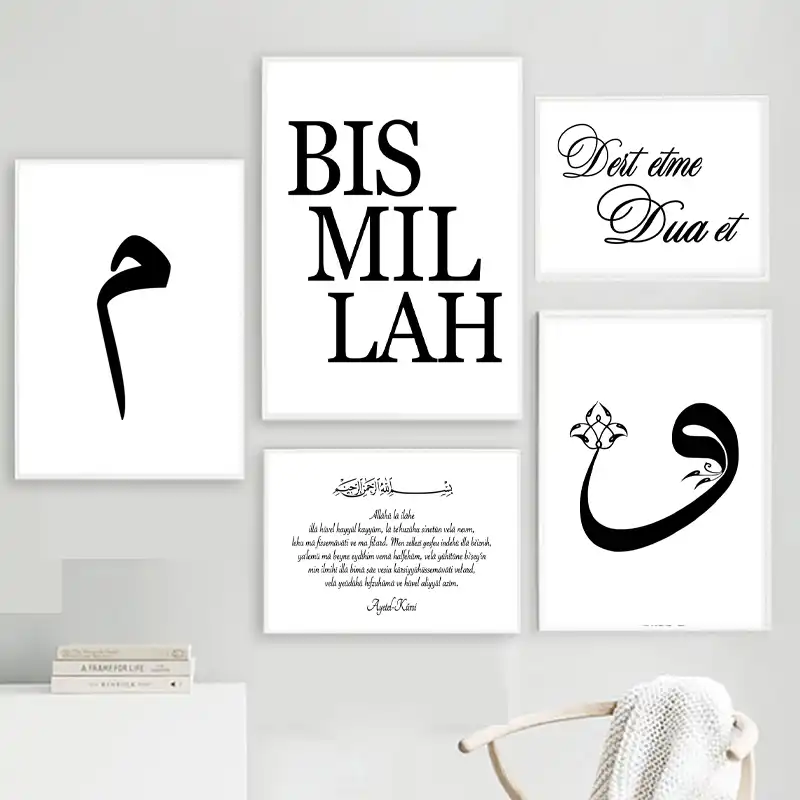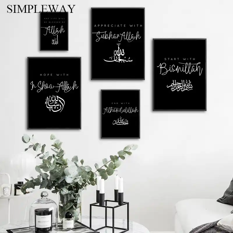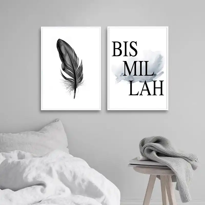 Islamic Quotes Wall Art Canvas Poster Black White Feather Print Minimalist Nordic Decorative Picture Painting Modern Home Decor Aliexpress