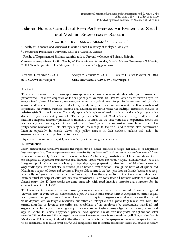 Pdf Islamic Human Capital And Firm Performance An Evidence Of Small And Medium Enterprises In Bahrain Ahmad Rafiki Academia Edu