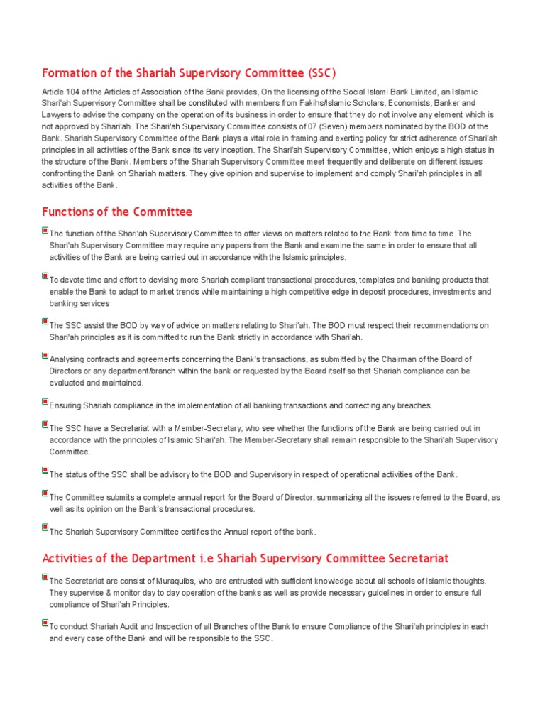 Formation Of The Shariah Supervisory Committee Sharia Board Of Directors