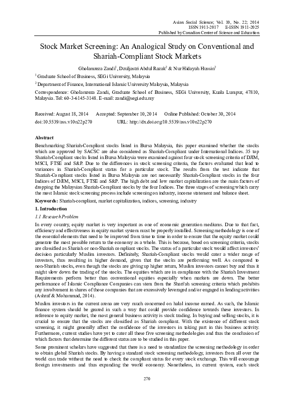 Pdf The Comparison Of Shariah Screening Methodology For Stocks Between Malaysia Security Commission Criteria And Dow Jones Method A Critical Assessment Buerhan Saiti Academia Edu