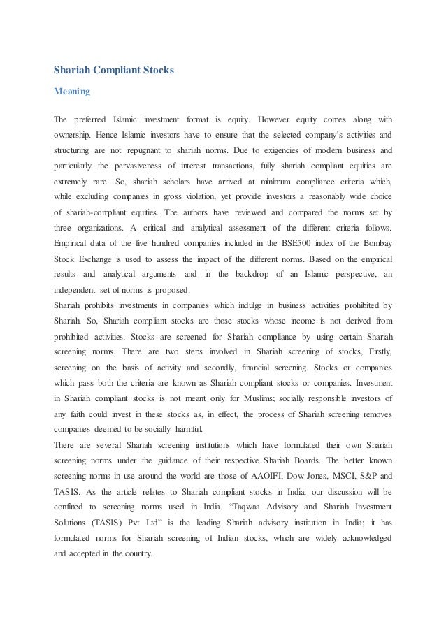 The Screening Of Stocks For Shariah Compliance Business Economies