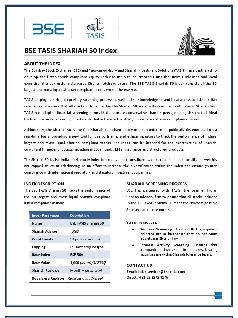 Bse Tasis Shariah 50 Index Factsheet Stock Market Index Sharia