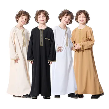 2020 Hot New Islamic Boy Clothing Round Neck Long Sleeve Abaya Embroidery Muslim Boys Dresses With Zipper Buy Islamic Arab Boy Clothing Muslim Jubah Kids Abaya Children Boys Thobe Stylish Round Neck