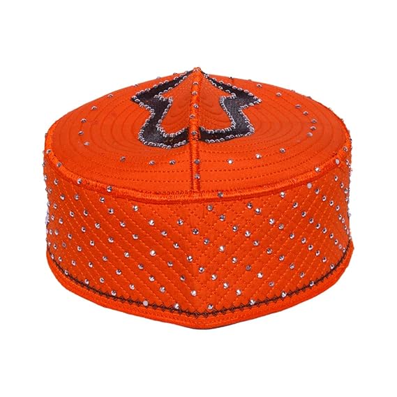Saffron Velvet Muslim Kufi Topi Velvet Saffron Muslim