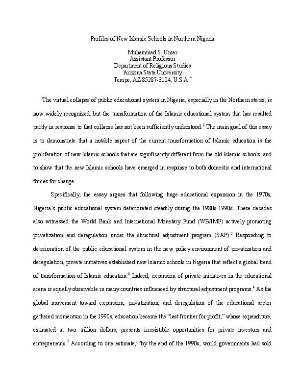 Pdf Profiles Of New Islamic Schools In Northern Nigeria M Sani Umar Academia Edu