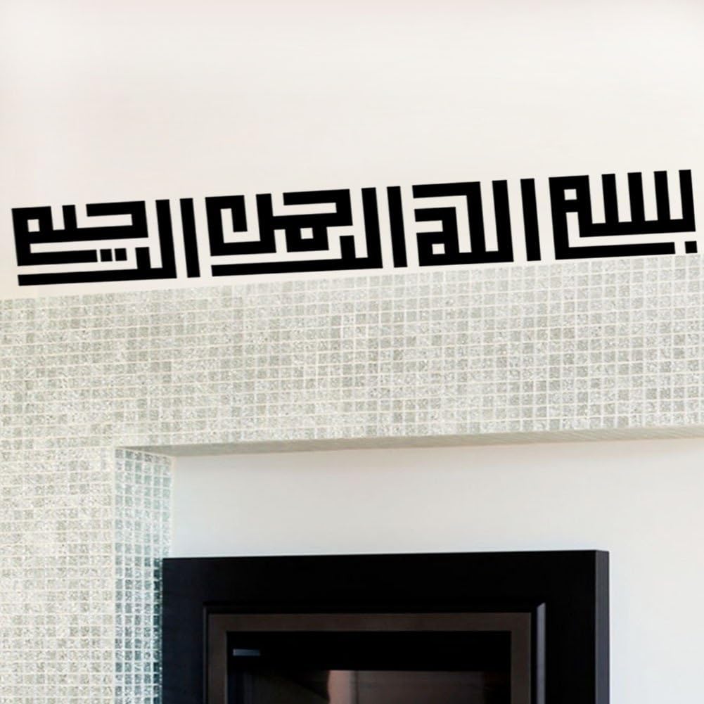 Islamic Wallpaper Muslim Arabic Bismillah Art Calligraphy Wall Decal Sticker Living Room Decoration Black Art Wallpaper Wall Decor Wallpaperliving Room Wallpaper Aliexpress