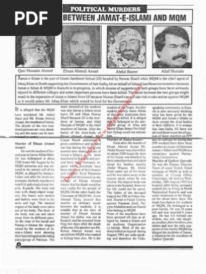 Politics Of Violence Between Jamat E Islami And Mqm Politics Of Pakistan Pakistan