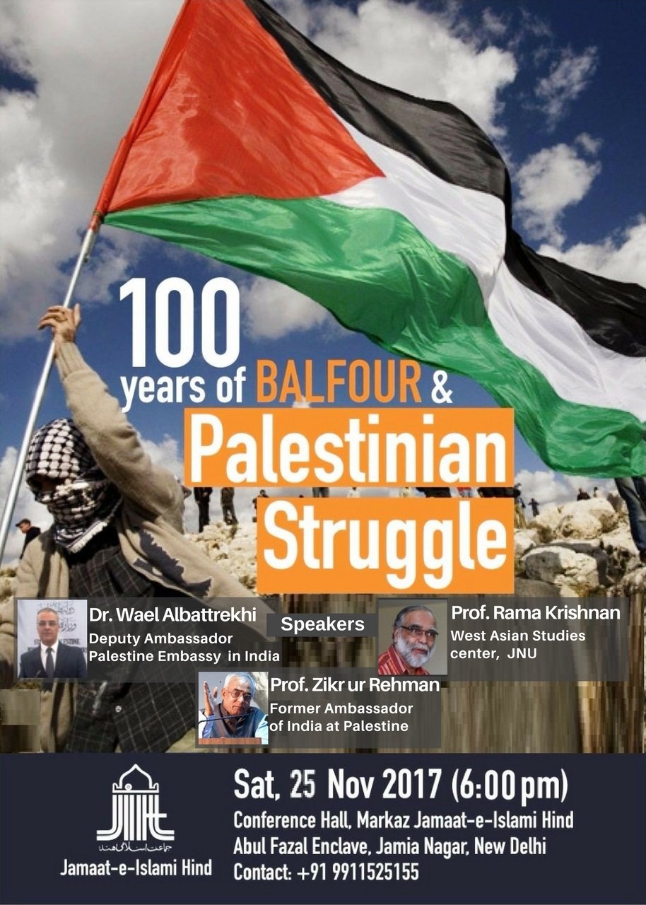 Jamaat E Islami Hind On Twitter A Program On 100 Years Of Balfour Palestinian Struggle On Sat 25 November At Markaz Jamaat E Islami Hind New Delhi Speakers 1 Dr Wael Albattrekhi Deputy Ambassador Of