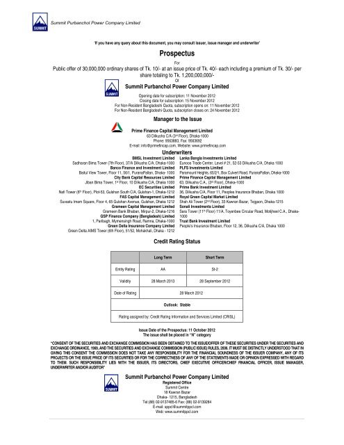 Summit Purbanchol Power Company Limited Prospectus