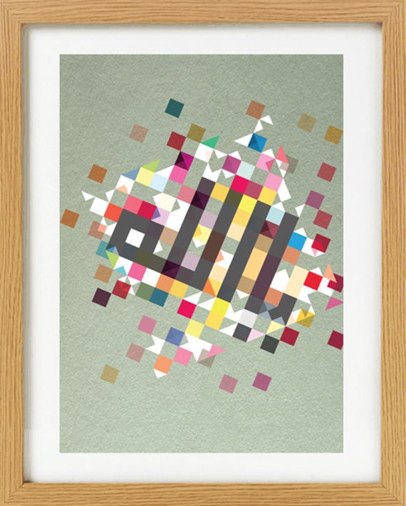 Modern Islamic Art Print Allah Swt Kufic Cubism Etsy