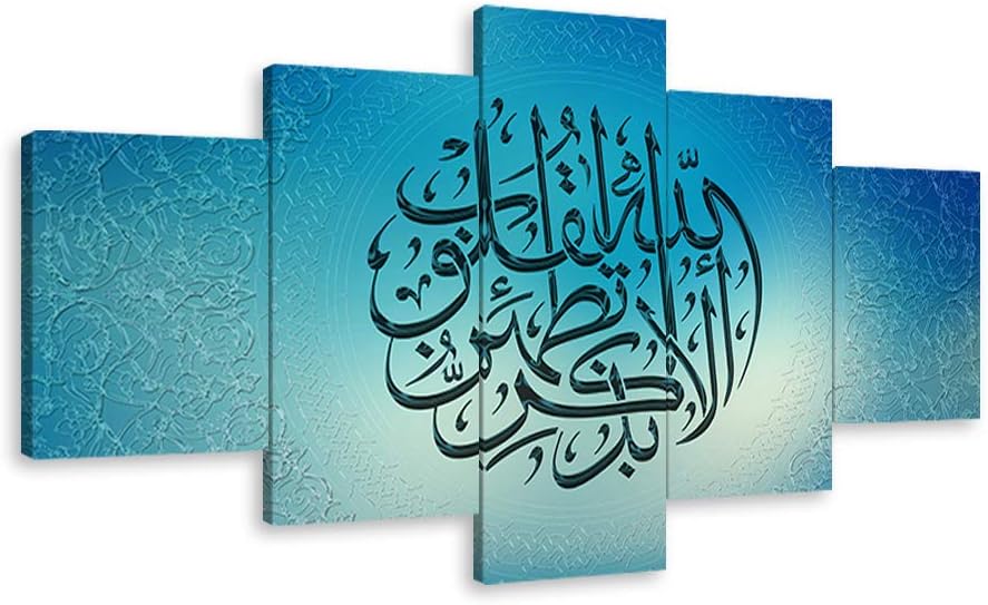 Amazon Com Blue Modern Islamic Wall Art Muslim Canvas Painting Printed Mecca Pictures 5 Pieces Crosses Posters Home Decor Artwork Huge Panel Arabic Set Supply Framed Bedroom Living Room 50 Wx24 H Artwork 29 Posters