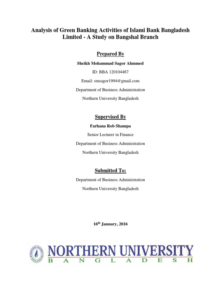 Internship Report On Green Banking A Study On Exim Bank Limited