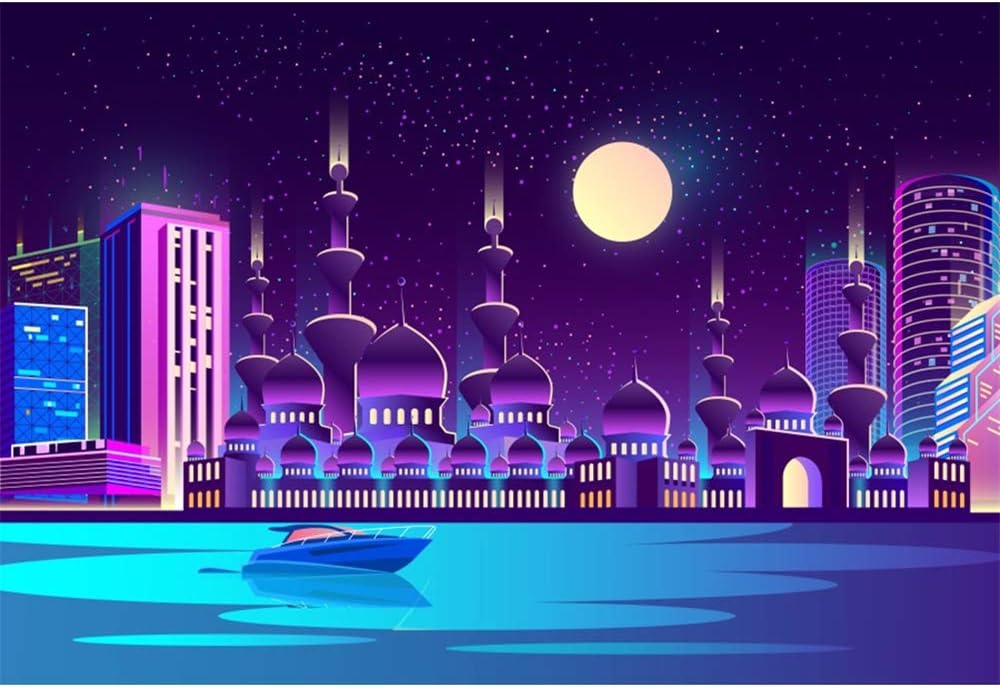 Yongfoto 10x6 5ft Cartoon Mosque Backdrop Purple Sky City Full Moon Photography Background Ramadan Muslim Islam Religion Arabic Islamic Pray Kids Adult Portrait Photo Booth Studio Props Wallpaper Amazon Ca Camera Photo