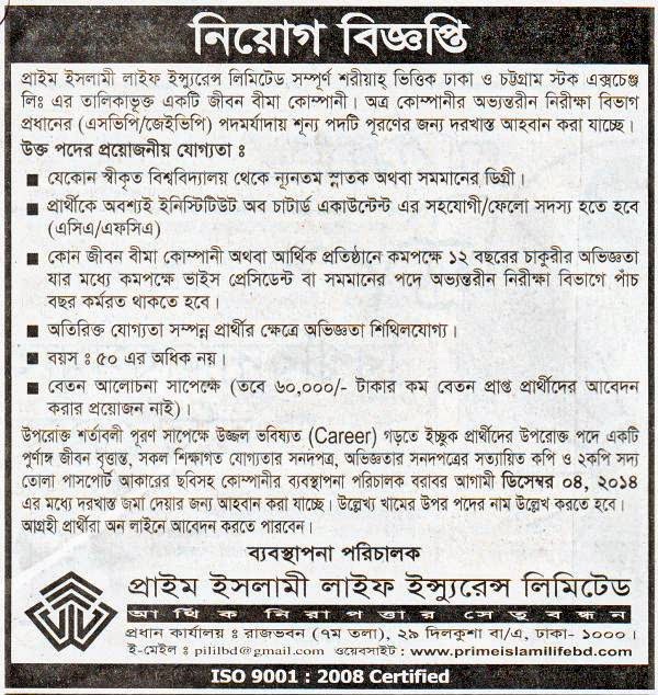 All Newspaper Jobs Prime Islami Life Insurance Limited Post Svp Audit Department