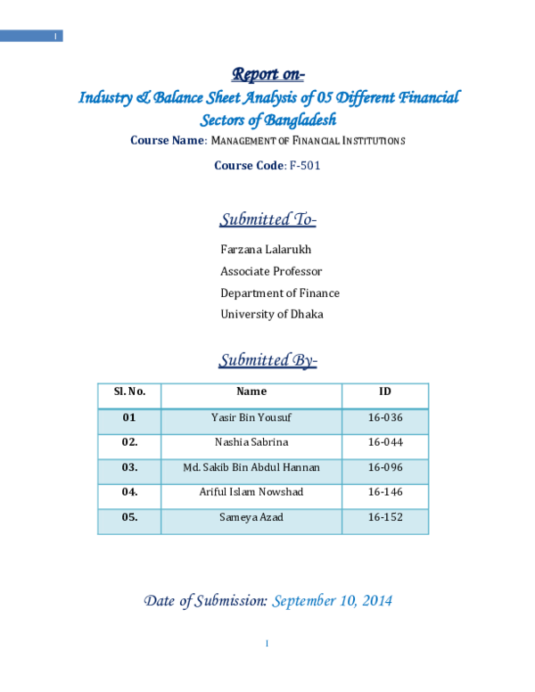 Doc Industry Balance Sheet Analysis Of 05 Different Financial Sectors Of Bangladesh Ariful I S L A M Nowshad Academia Edu