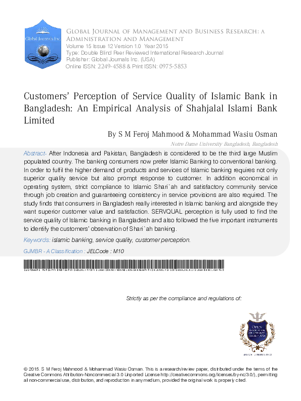 Pdf Customers Perception Of Service Quality Of Islamic Bank In Bangladesh An Empirical Analysis Of Shahjalal Islami Bank Limited S M Feroj Mahmood Academia Edu