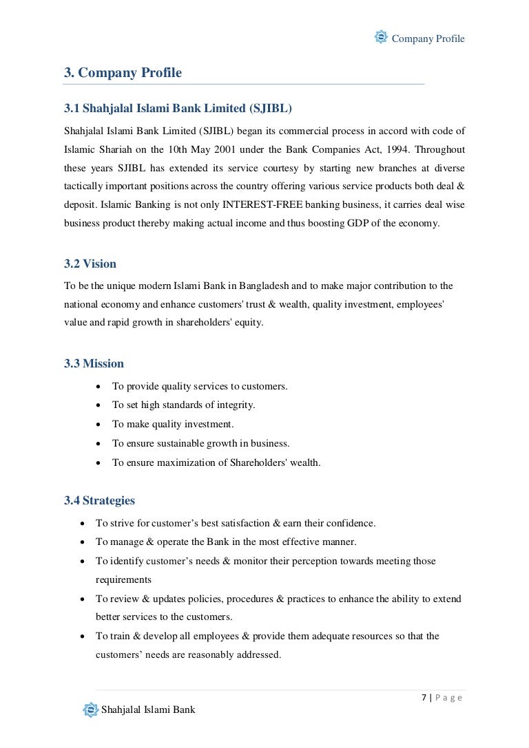 Report On Shahjalal Islami Bank Limited Msrblog