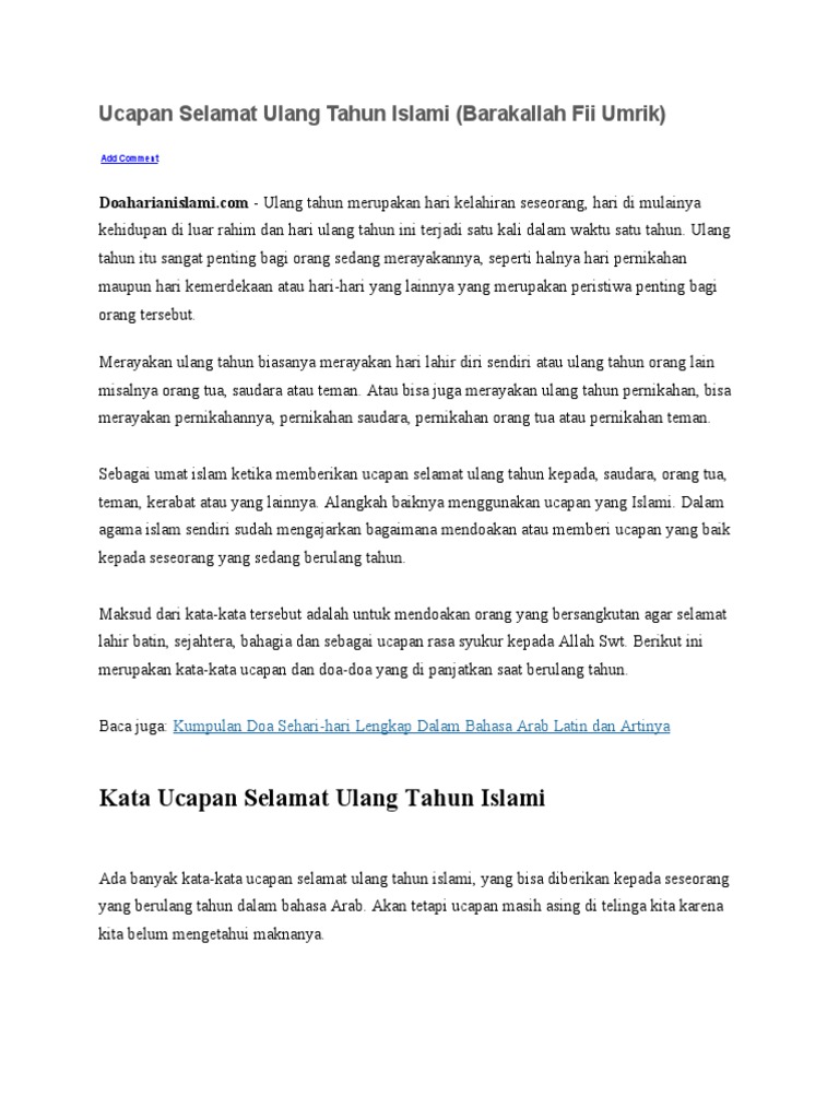 Ucapan Selamat Ulang Tahun Islami Barakallah Fii Umrik Doa Harian Islami