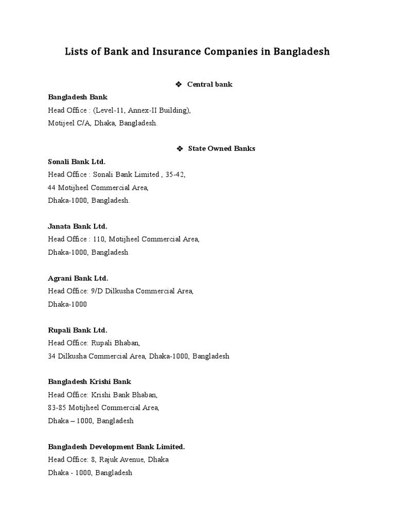List Of Bank And Insurance Companies Dhaka Companies Of Asia